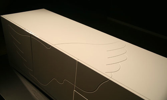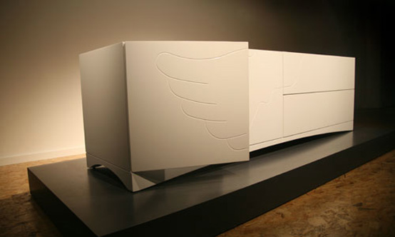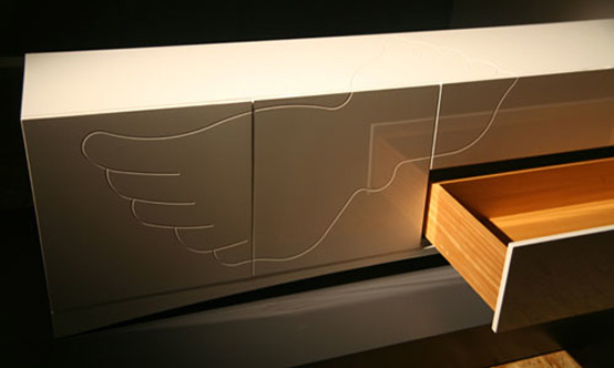 The sideboard also has 2 cabinets and two drawers so it can serve as a TV unit too. If you search for some minimalist furniture for your modern interior, this sideboard would be much more interested than ones you can find in IKEA and other similar stores. Who said that modern sideboard should be boring and simple? For example, it could be simple but unusual. This one is white gloss lacquered and looks similar to other minimalist sideboards on the market. Although it has one distinctive feature that makes it unique angel wings that are artfully debossed into the piece.